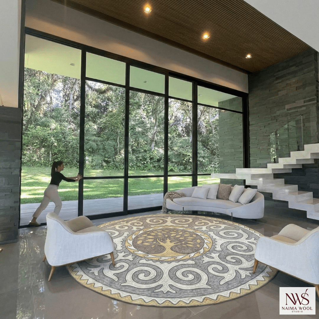 Ground your space with a bold, tactile centerpiece.