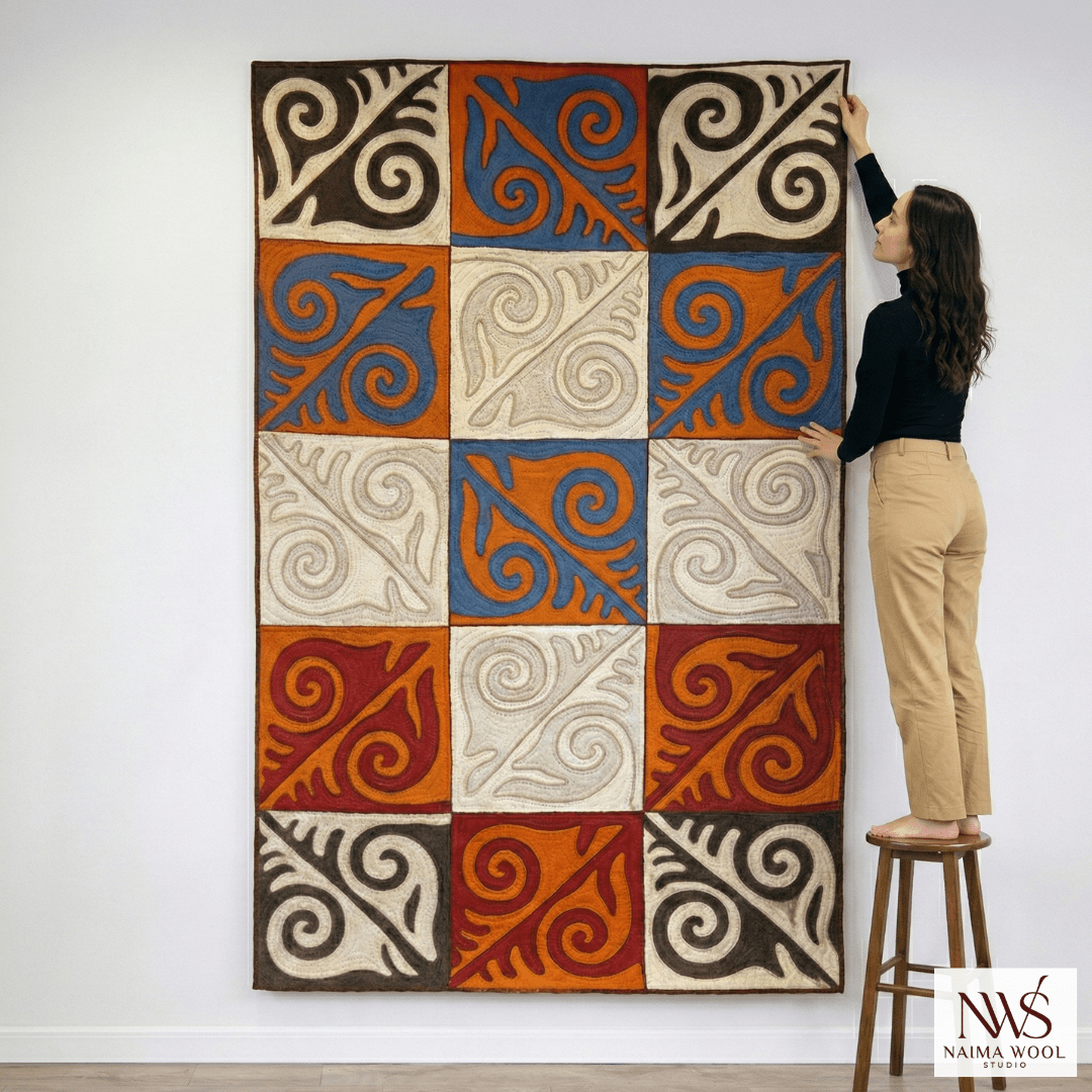 - Handcrafted Wool Rug & Textile Wall Art