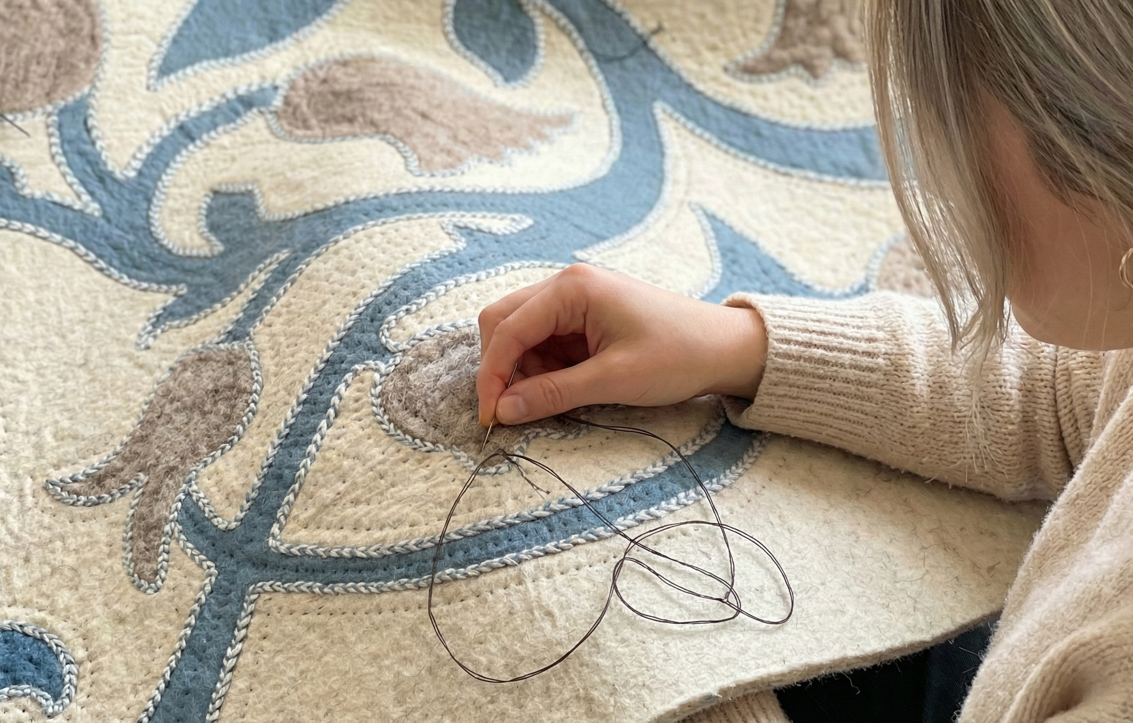 Whether you are sourcing a unique wool rug for a residential project or commissioning a custom felt tapestry for a commercial space, we make ordering bespoke pieces seamless and highly personalized. Our studio specializes in authentic, handcrafted textiles and supports professionals with project quotes, lead-time coordination, and tailored proposals.